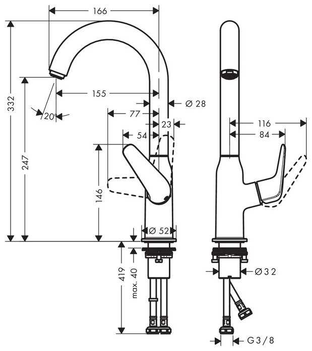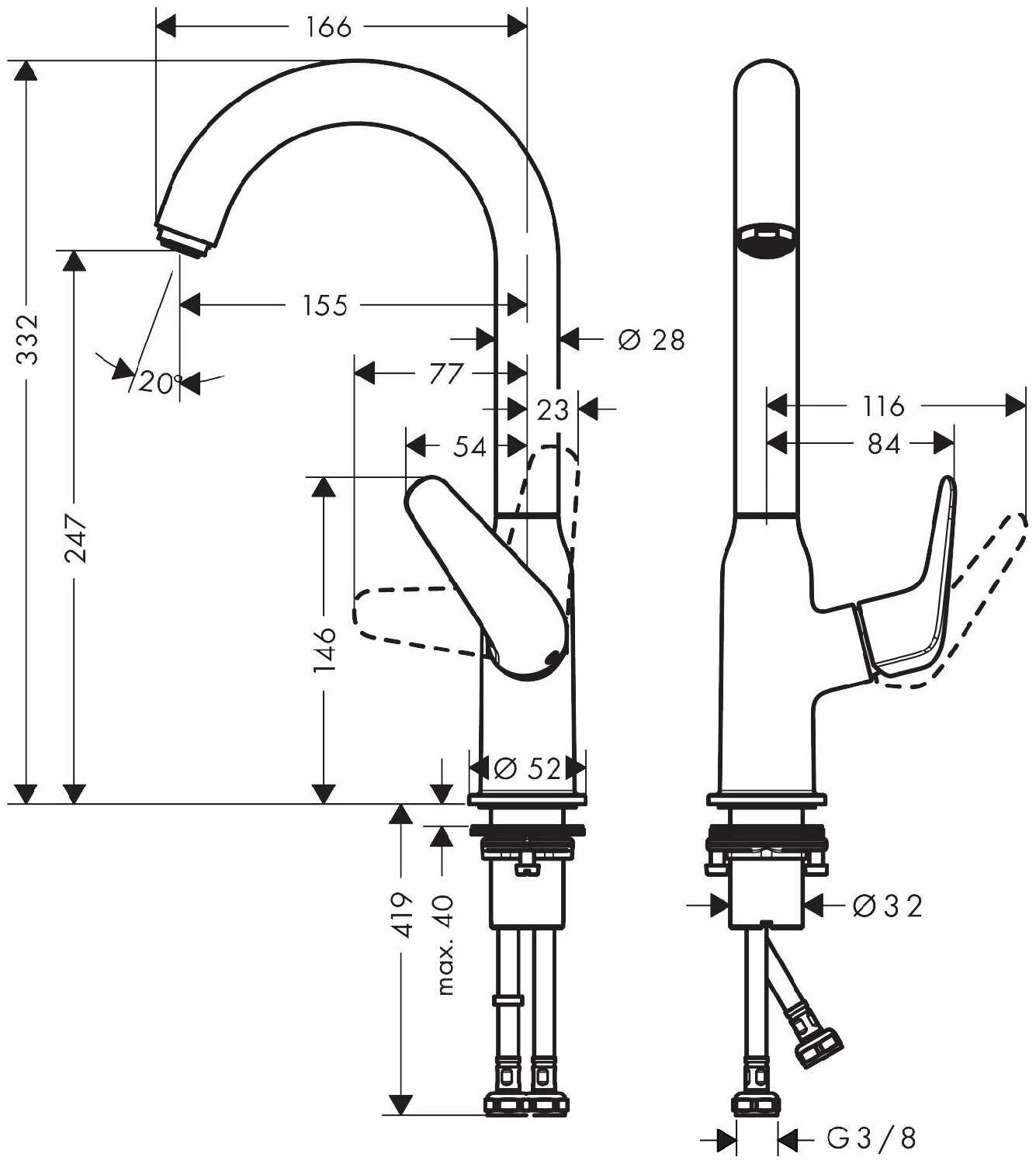Характеристи Hansgrohe Novus 71128000, рычажный