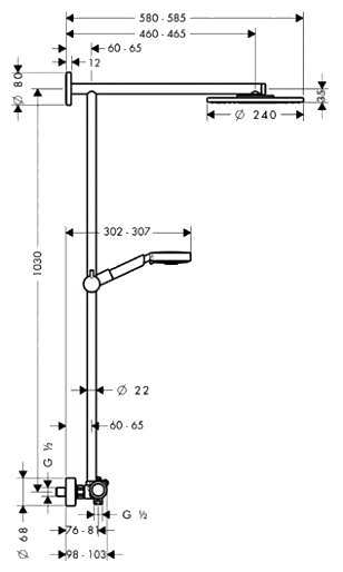 | Дополнительная информация : | система очистки от загрязнений QuickClean, высота стойки для душа: 1030 мм, диаметр душевой лейки: 100 мм, диаметр верхнего душа: 240 мм |