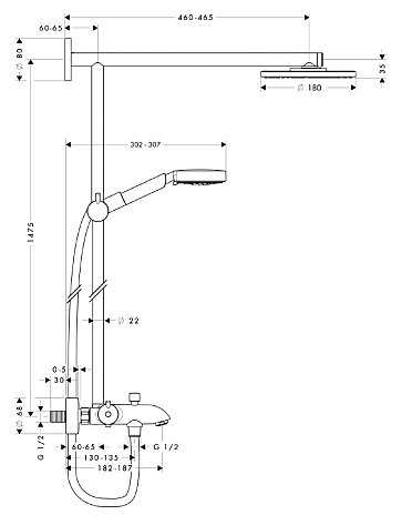 | Высота стойки для душа : | 1475 мм |