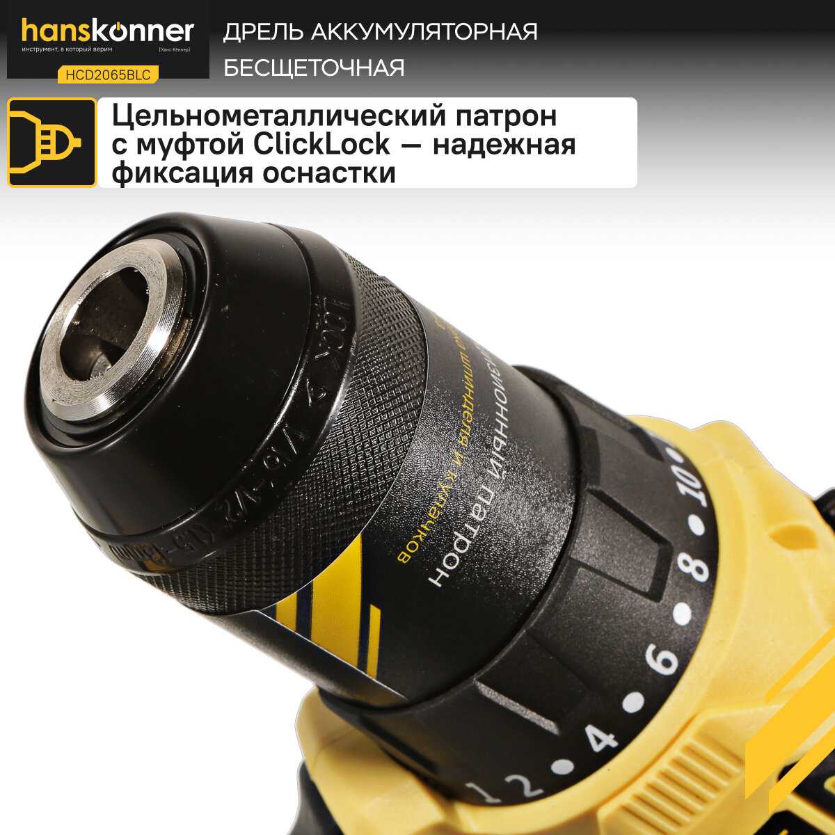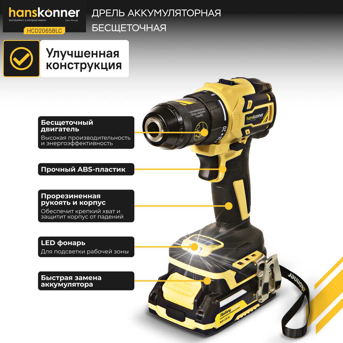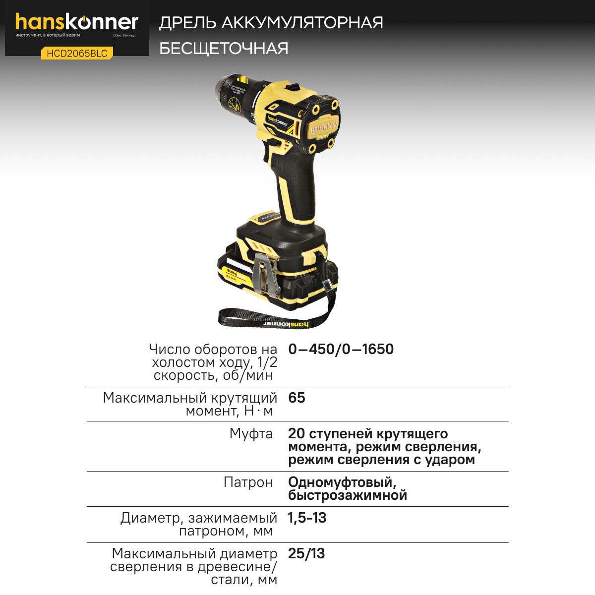 Hanskonner Дрель аккумуляторная (HCD2065BLC)?