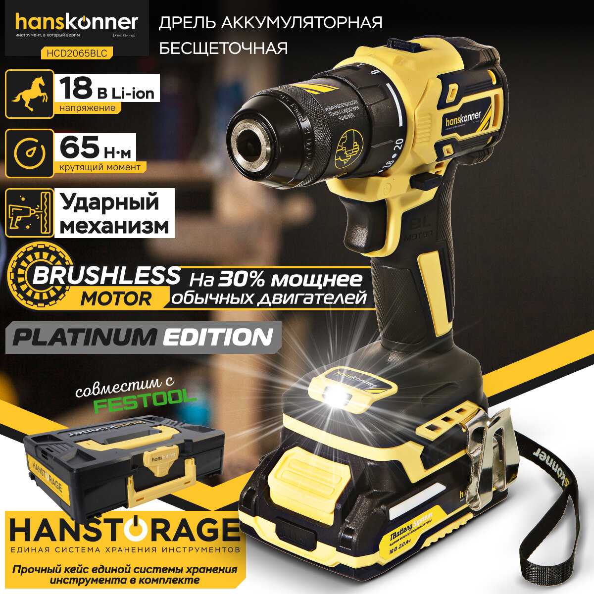 Лучшие цены сегодня на Hanskonner Дрель аккумуляторная (HCD2065BLC)