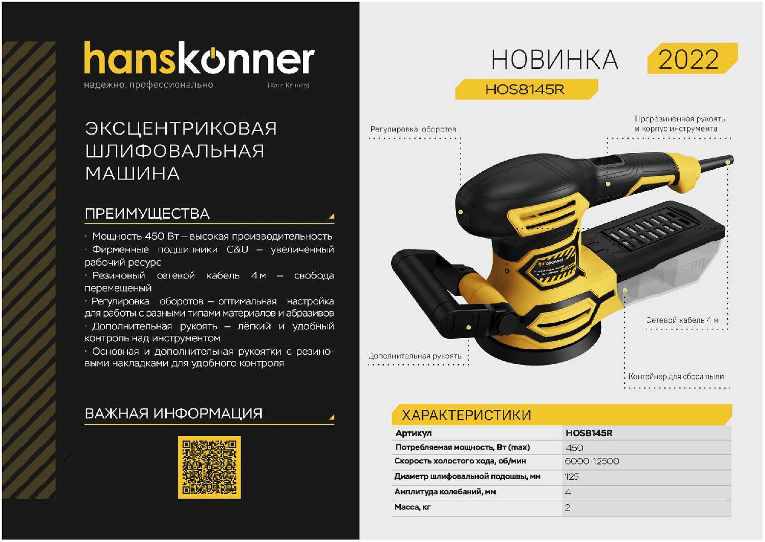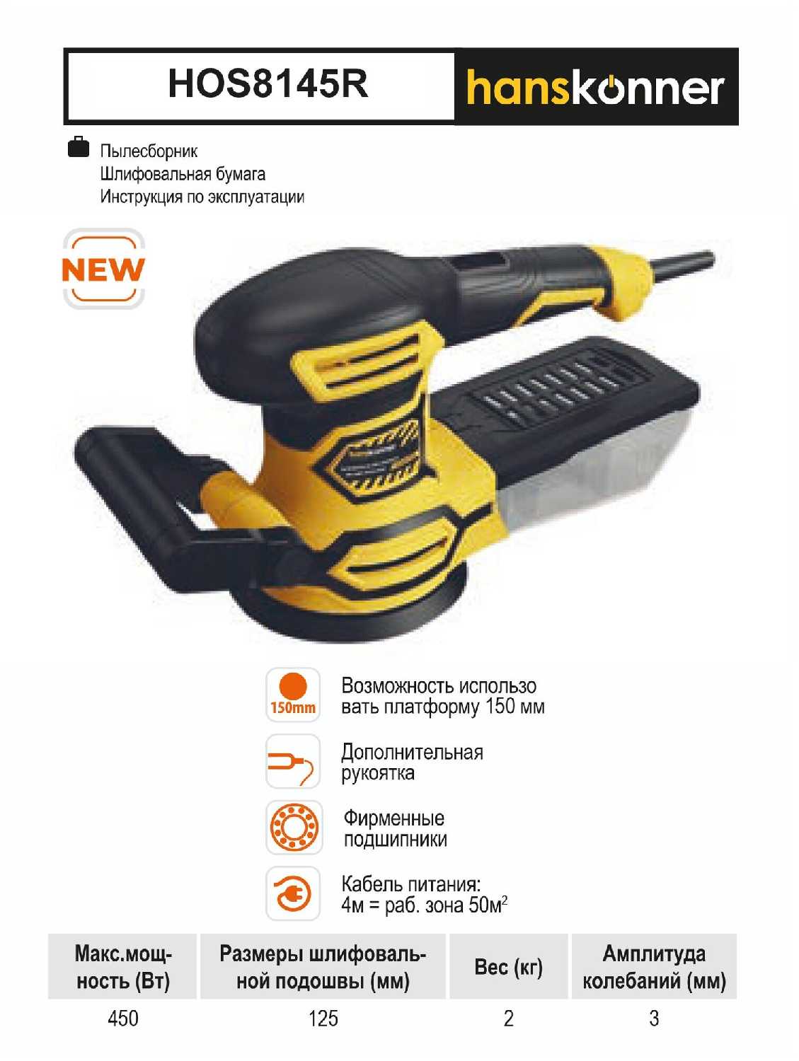 10 отзывов пользователей o Hanskonner Эксцентриковая шлифовальная машина (HOS8145R)
