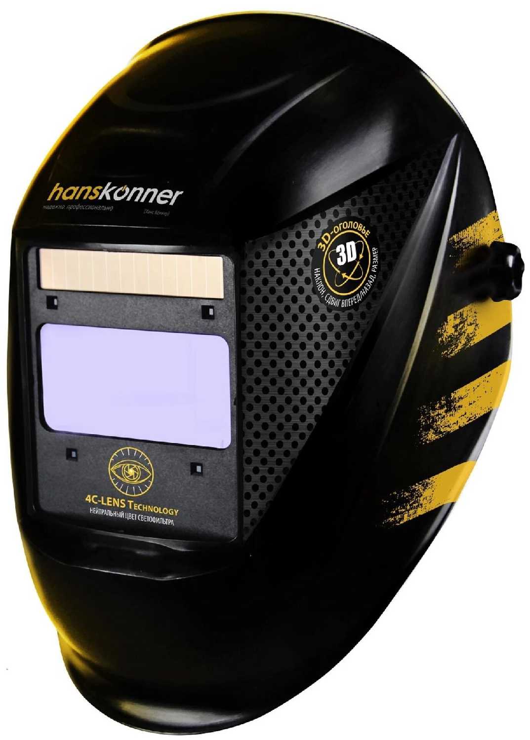 - + Легкая, удобная в использовании, легко регулируется и фиксируется размер под голову. Большой размер стекла. Несколько режимов затемнения стекла. Отключение режима затемнения, для работы с болгаркой.