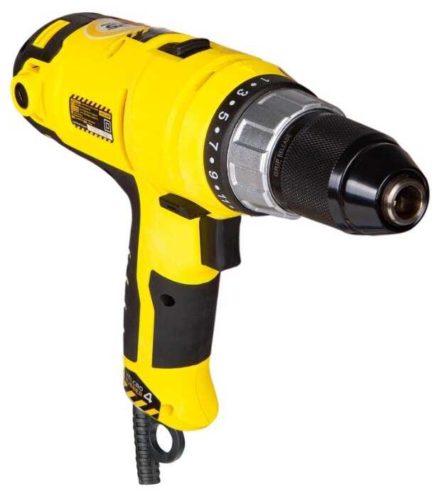 - + Длинный резиновый кабель, металлический патрон до 13мм, мощный крутящий момент.