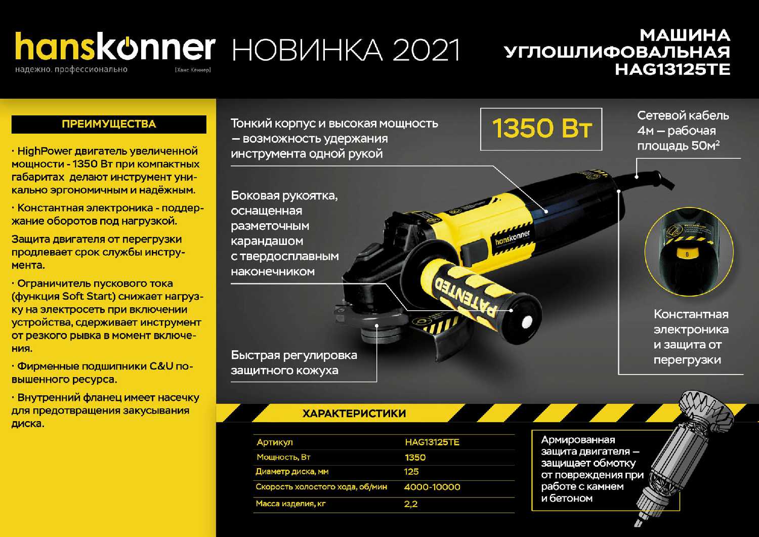 Обзор Hanskonner УШМ HAG13125TE*: