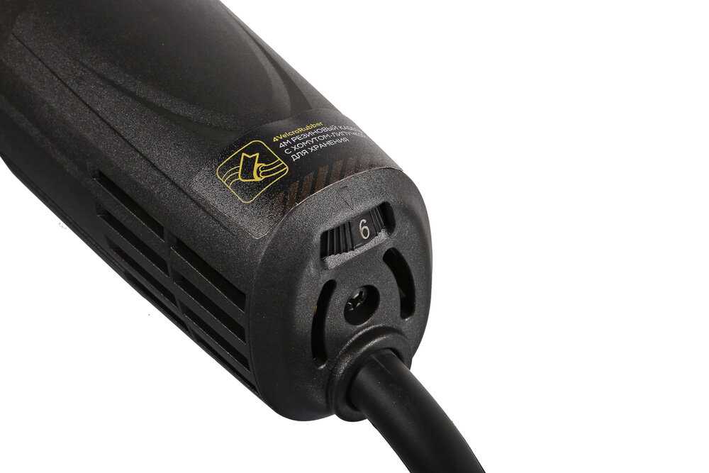 Резиновая оплётка провода не дубеет на морозе и устойчива к истиранию о строймусор. Длина позволяет работать без удлинителя в гараже или на объекте площадью 15–20 м². Пользователи особо отмечают гибкость кабеля — он не путается под ногами и выдерживает случайные рывки. -