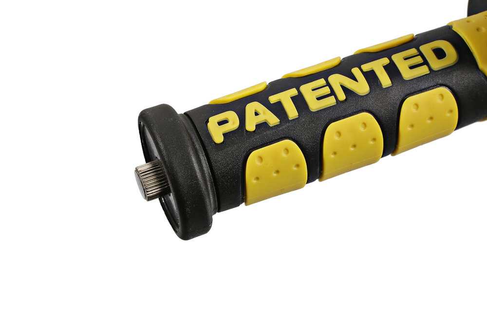 - Прорезиненная рукоятка с антискользящими вставками снижает вибрацию — при длительной работе не возникает онемения пальцев.