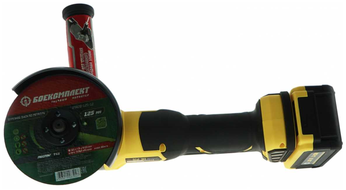 Из минусов : хорошо работает только на полностью заряженной батарейке, потом начинает закусывать диск и болгарка останавливается. По сравнению с проводными моделями мощности не хватает.Кнопка самопроизвольно отщелкивается. Вес тоже можно отнести скорее к недостаткам - рука быстро устает.