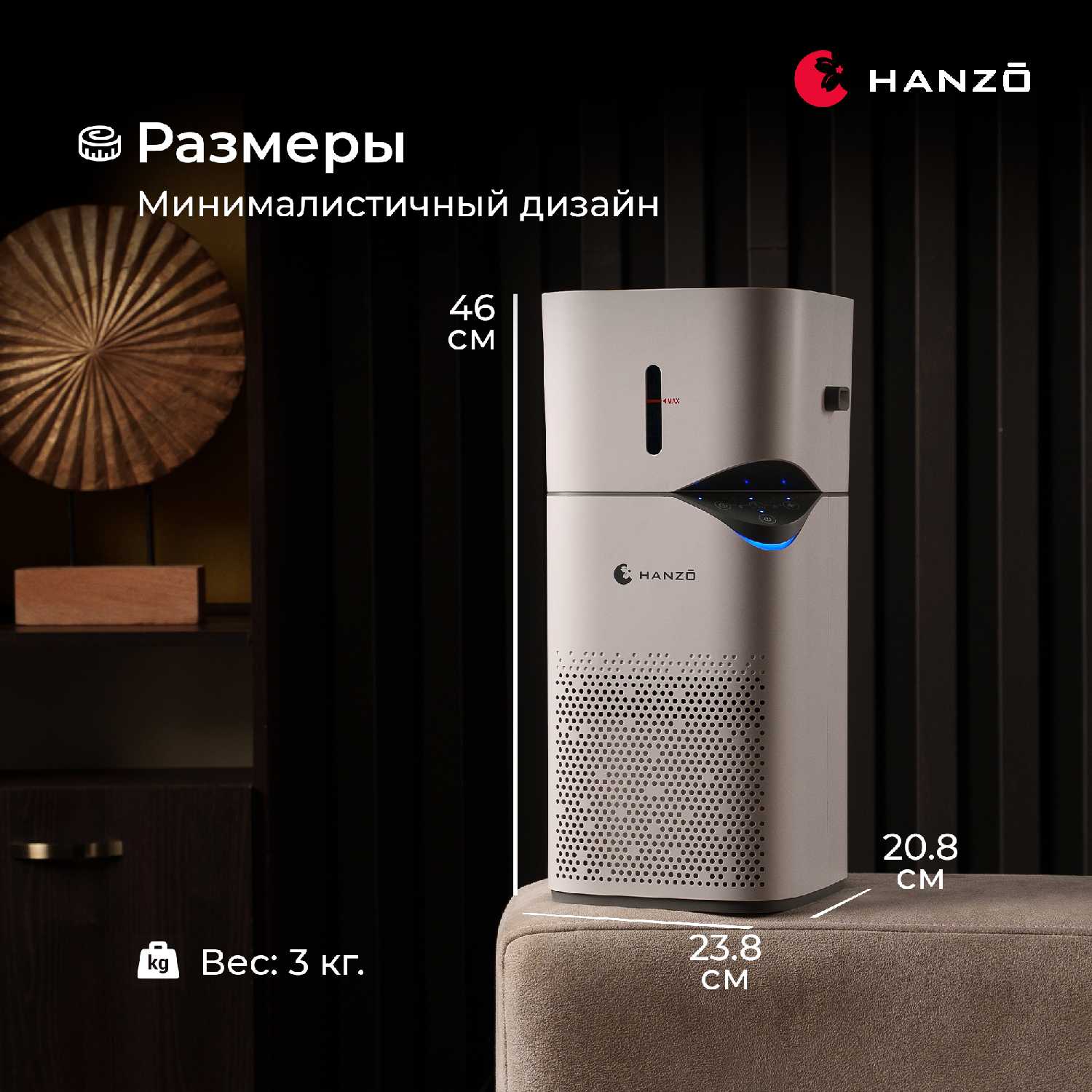 Бесконечно радует новый очиститель воздуха Hanzo! Честно, не ожидала, что это такой мега-комфорт - гармония во всех ракурсах. Комната у меня стандартная - 20 м, так что, справляется он идеально. Я не аллергик, но чувство дискомфорта, особенно в отопительный сезон (ну как бы пыль в воздухе), не покидало, но отныне всё как ни бывало - просто чудесно дышится - легко-свободно, как будто не в перенасыщенном мегаполисе живу, а за городом, Hanzo реально круто работает! Ионизация - огромный бонус - воздух становится наисвежайшим, как после грозы. Сейчас отопительный сезон в разгаре, эффект заметнее - головные боли на порядок уменьшались, засыпаю быстрее. Это факт! И не менее приятно - он действительно тихий (почти не слышно). Ну и конечно не могу не сделать акцент на том, что выглядит прекрасно - стильный, классно вписался в интерьер комнаты. Так что, Hanzo Z15 - реал-маст-хэв в деле зож и макси-комфорта. Конечно рекомендую!!..