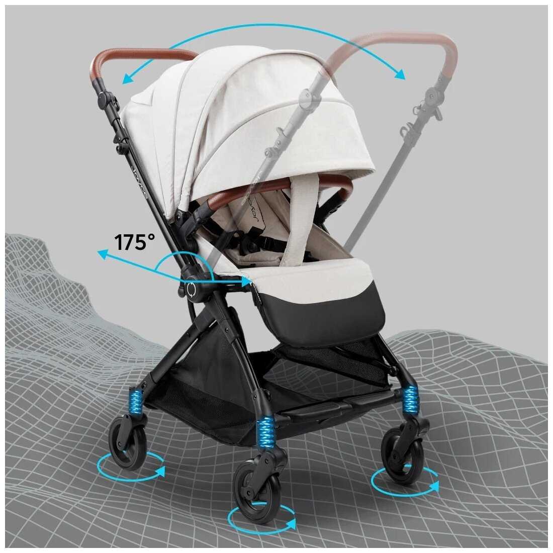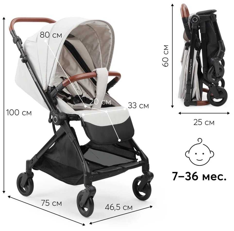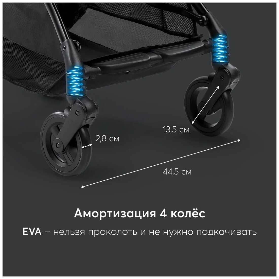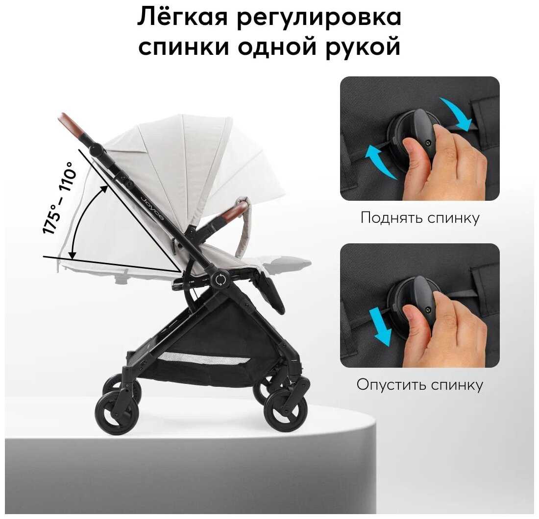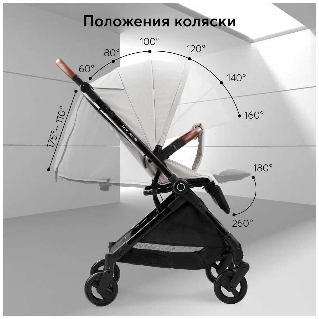 максимальная нагрузка на корзину для вещей - 2 кг, положение спинки регулируется ремнём: 110-175°, материал колес: пластиковые с покрытием EVA