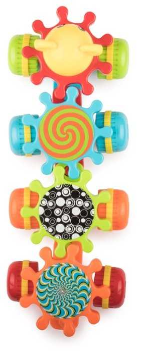 - + Игрушка довольно интересная для маленького ребёнка ! Шестеренки крутятся , цвета яркие , пластик качественней...