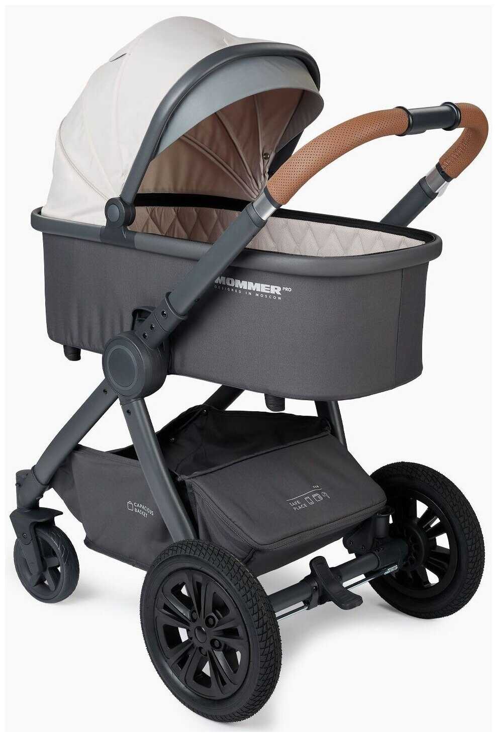- + Красивая коляска, плотный материал легко чистить,можно на шасси устанавливать автолюльку, колеса надувные, вместительная корзина внизу, светоотражатели, по-моему мнению прекрасный комплект особенно с автолюлькой.