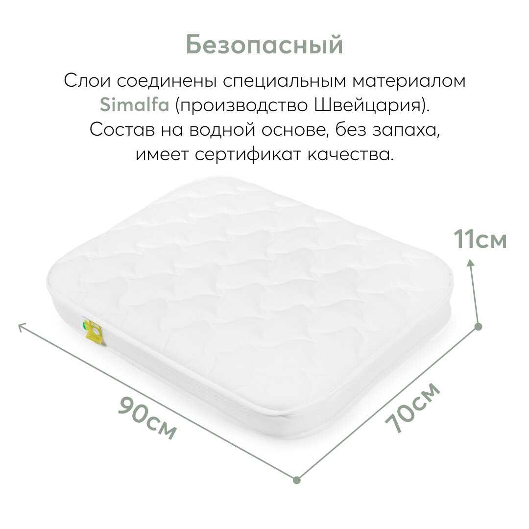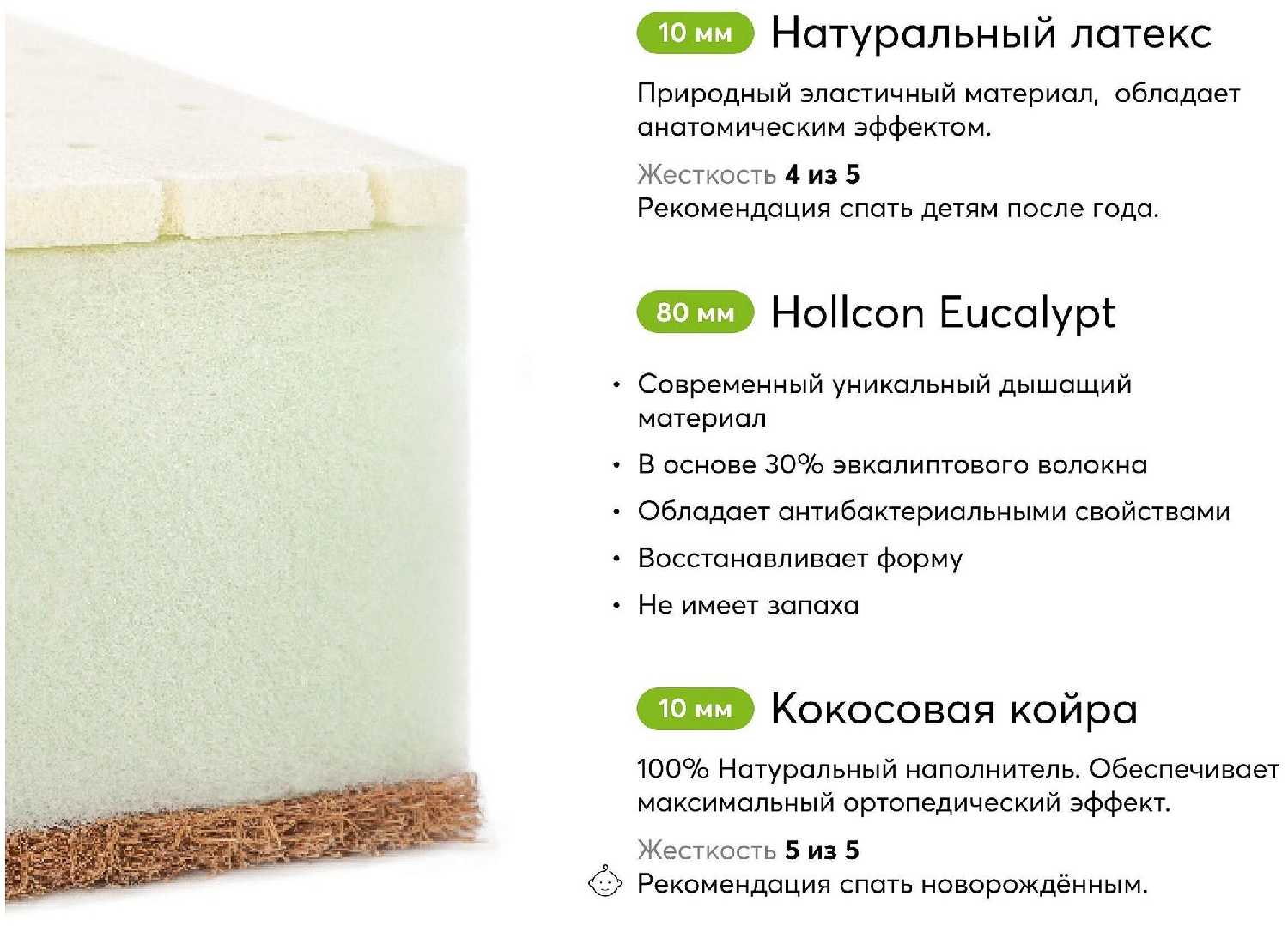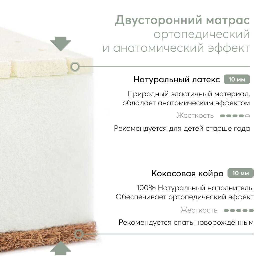 - Жесткая сторона с кокосовым наполнителем обеспечивает ортопедическую поддержку новорожденным без излишней "доскообразной" твердости.