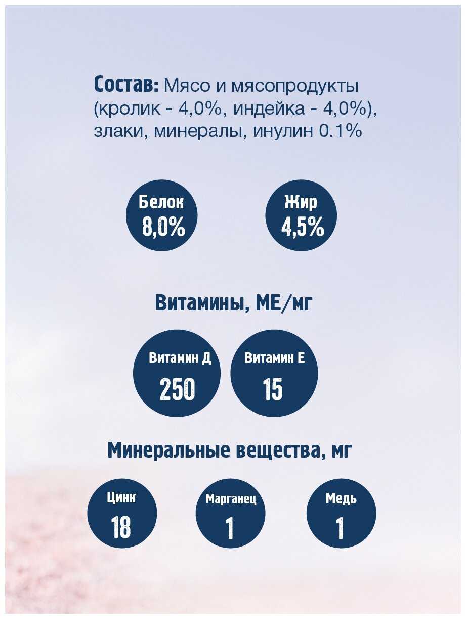 | Минеральные вещества : | микроэлементы/кг: медь 1 мг, марганец 1 мг, цинк 18 мг. |