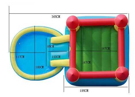 Дополнительная информация : | размеры прыжковой поверхности 147x147 см, высота защитной сетки-ограждения: 84 см, размеры основания горки: 110x85 см, ширина скользящей поверхности горки: 55 см, допустимая нагрузка: 68 кг (допустимое количество детей одновременно – 2, допустимый вес каждого ребенка не более 35 кг), в комплекте насос и сумка для хранения |