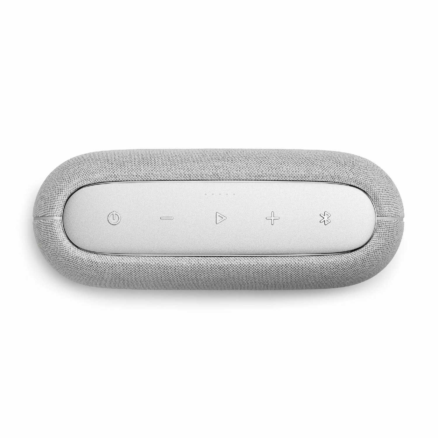 Алюминиевый корпус и тканевая решетка придают жесткость конструкции — колонку можно брать одной рукой, не боясь деформации. Минималистичный дизайн без выступов и серебристая окраска упрощают очистку от загрязнений. Компактные размеры (меньше аналогов вроде JBL Charge) и вес около 1 кг позволяют носить ее в рюкзаке или даже в руке длительное время. -