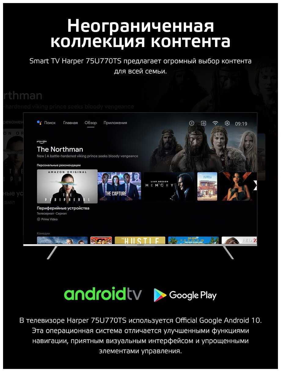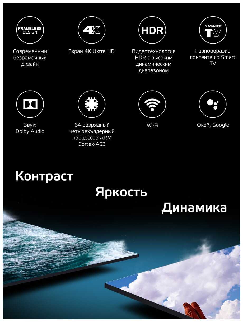 - + Большой 4K HDR Android телевизор начального уровня с хорошей картинкой и удобным управлением с голосовой поддержкой и матрицей IPS соо всеми известными технологиями типа Time shifting и PVR. Большое количество входов и выходов Память 3 ГБ оперативка и 16 Гб основная. Андроид позволяет устанавливать приложения