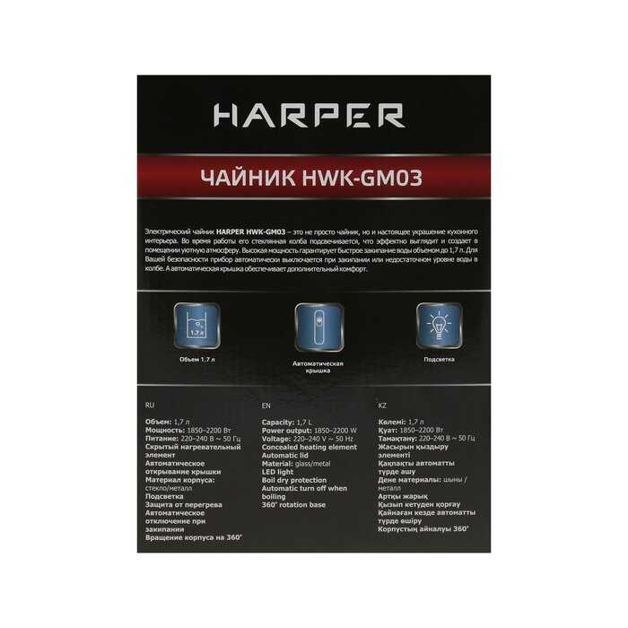 Π₯Π°ΡΠ°ΠΊΡΠ΅ΡΠΈΡΡΠΈ HARPER Π§Π°ΠΉΠ½ΠΈΠΊ (HWK-GM03)