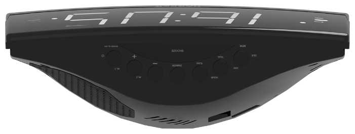 - Крупные тактильные кнопки с раздельными зонами для настройки времени, будильника и радио.