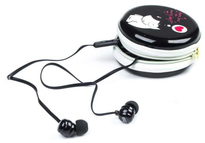 - + Комфортные вкладыши немного изогнутой формы, комфортные для ушей. Прочные плоские провода. Гарнитура с микрофоном. Неплохое звучание. Твердый прочный чехол с рисунком