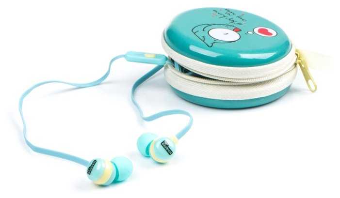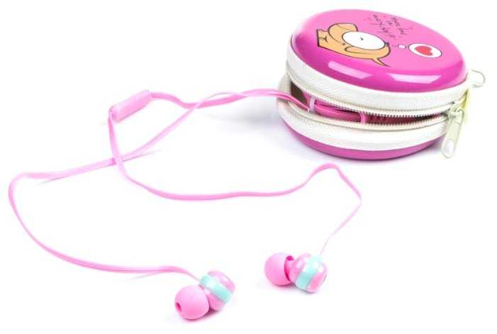- + Удобные изогнутые вкладыши (как для детей так и для взрослых). Прочные провода что важно для детских наушников. Гарнитура для общения. Дизайнерский чехол с оригинальным рисунком