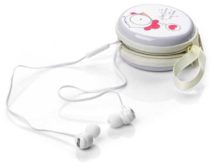 - + Яркие, мягкие вкладыши, прочный пластик наушников и плоский надежный провод, гарнитура с микрофоном для разговоров, яркий футляр с принтом, бюджетная цена