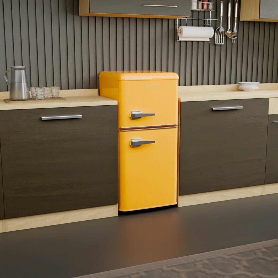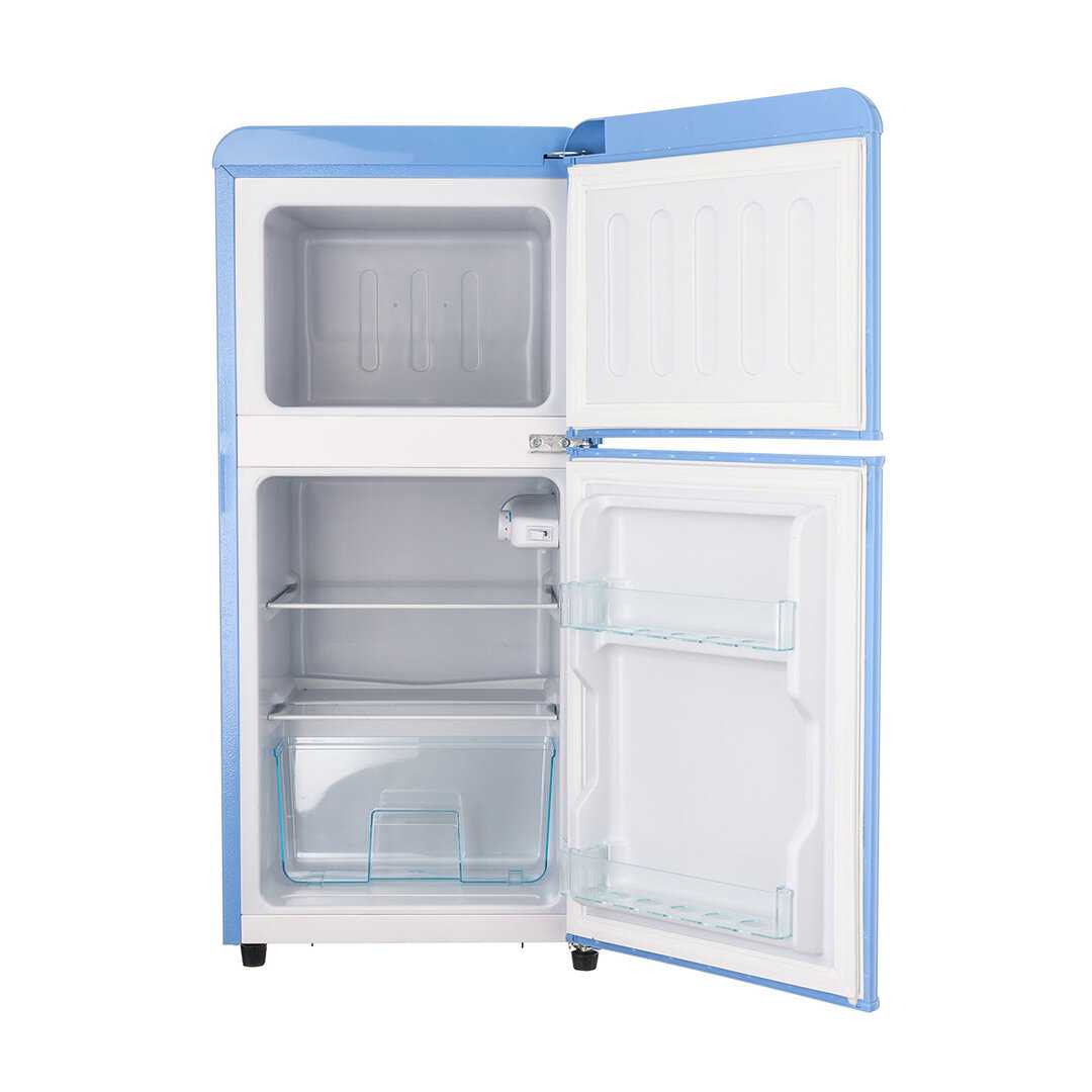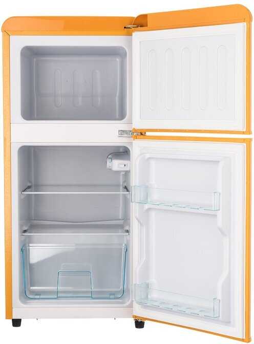 - + Интересный ретро-дизайн. Компактный, уже, чем подобные мелкие холодильники. Вместительная морозилка.