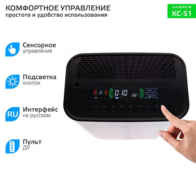 - + Эффективная система фильтрации, компактные размеры, низкий уровень шума, удобное сенсорное управление