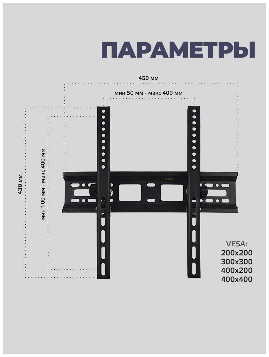 - - 55 дюймов для него край - Лучше взять побольше (до 80-90 дюймов), чтобы площадь крепежа была больше и телек был крепче закреплён, особенно если планируете часто втыкать/вытыкать кабеля