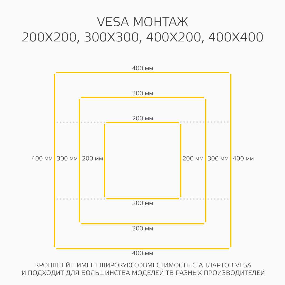 - Универсальность крепления по стандарту VESA: