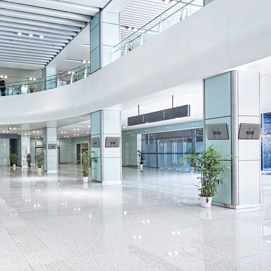 - Контуры кронштейна не выступают за габариты 55-дюймовых панелей, сохраняя эстетику.