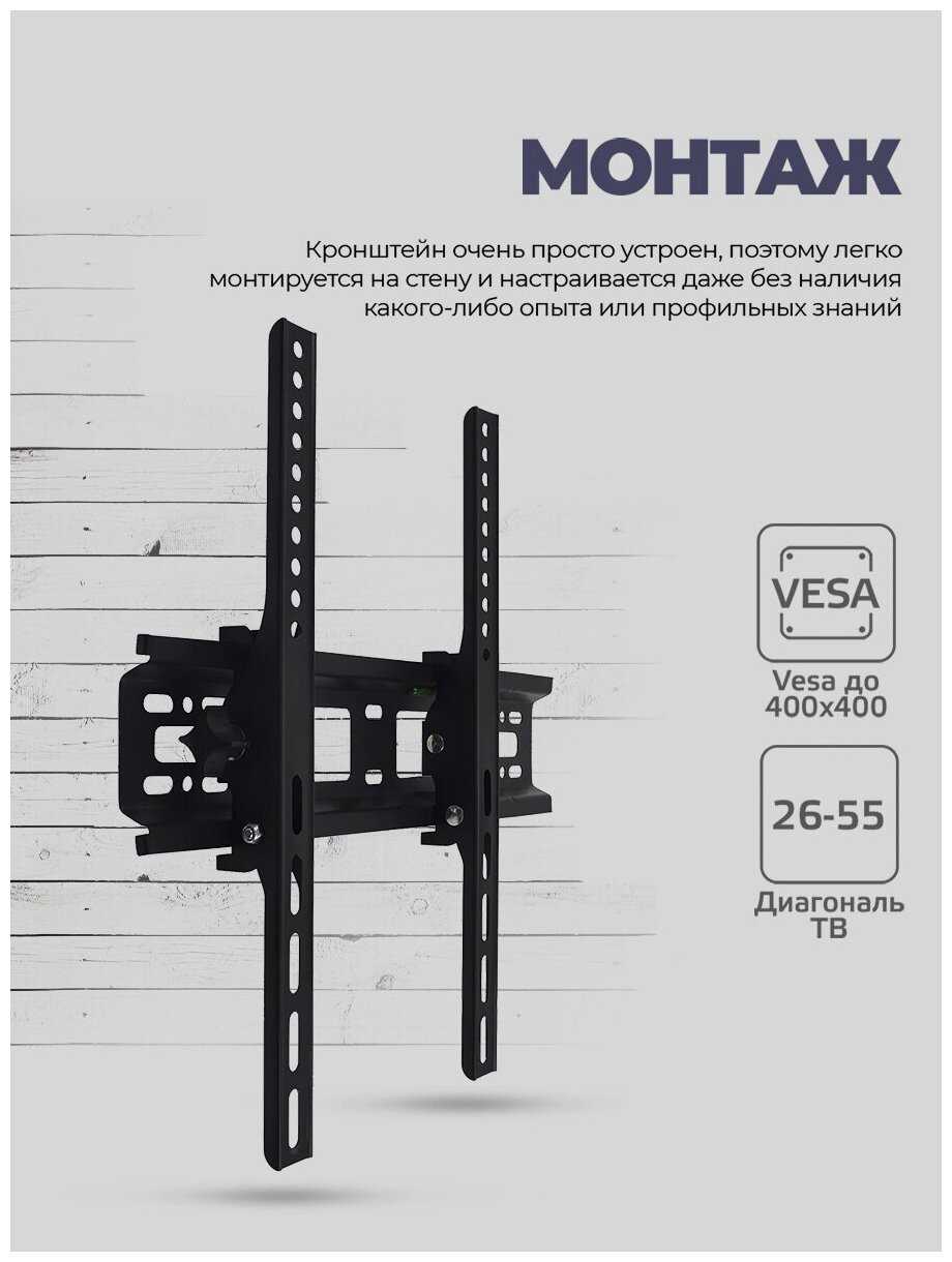 Основная сложность — финальное затягивание крепежей. Из-за малого зазора между стеной и телевизором (особенно при VESA 200×200 мм) невозможно подобраться к барашкам регулировки наклона. Пользователи вынуждены предварительно выставлять угол до установки экрана либо модифицировать конструкцию. -