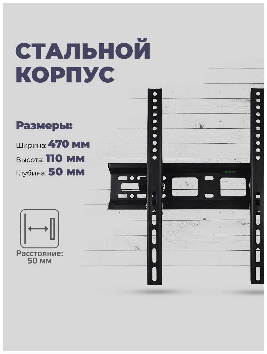 - Стальные элементы конструкции выдерживают заявленную нагрузку до 30 кг, обеспечивая безопасное крепление для телевизоров диагональю 26–55 дюймов.