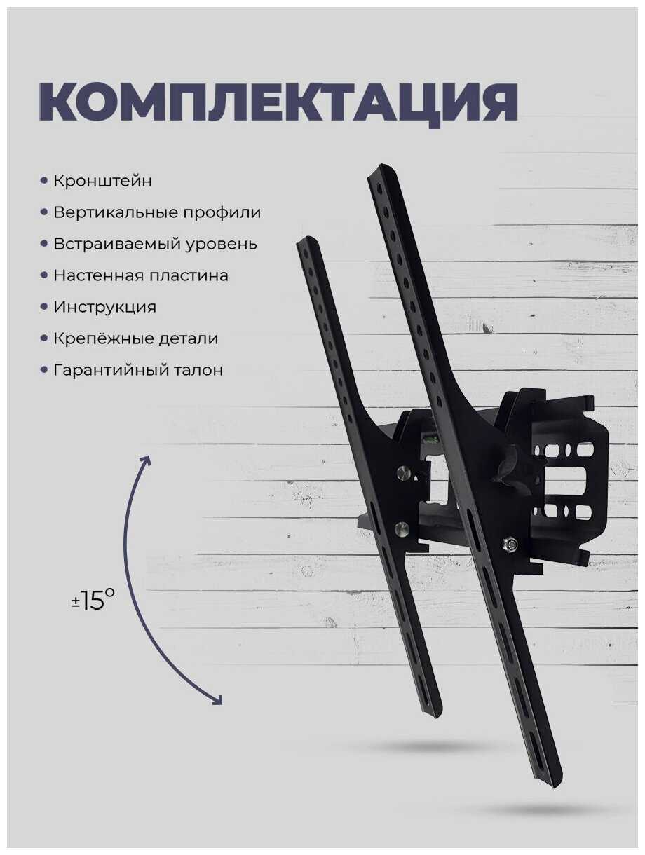 - + Наклоняет телевизор вниз на 15 градусов, простая инструкция по установке, металлический корпус