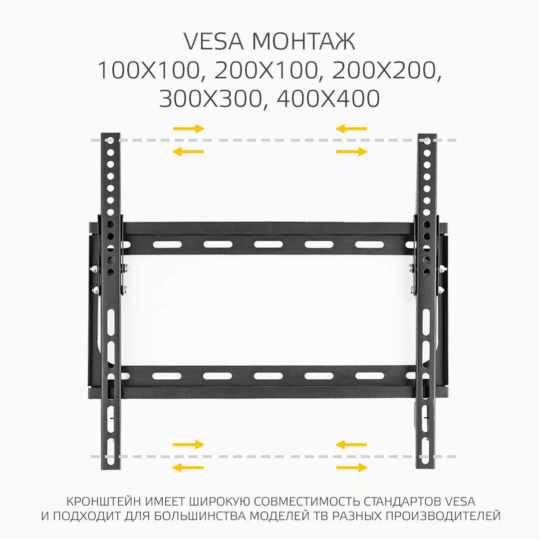 Стандарт Vesa : | 100x100 мм, 100x150 мм, 150x100 мм, 150x150 мм, 200x100 мм, 200x200 мм, 300x300 мм, 340x120 мм, 400x400 мм |