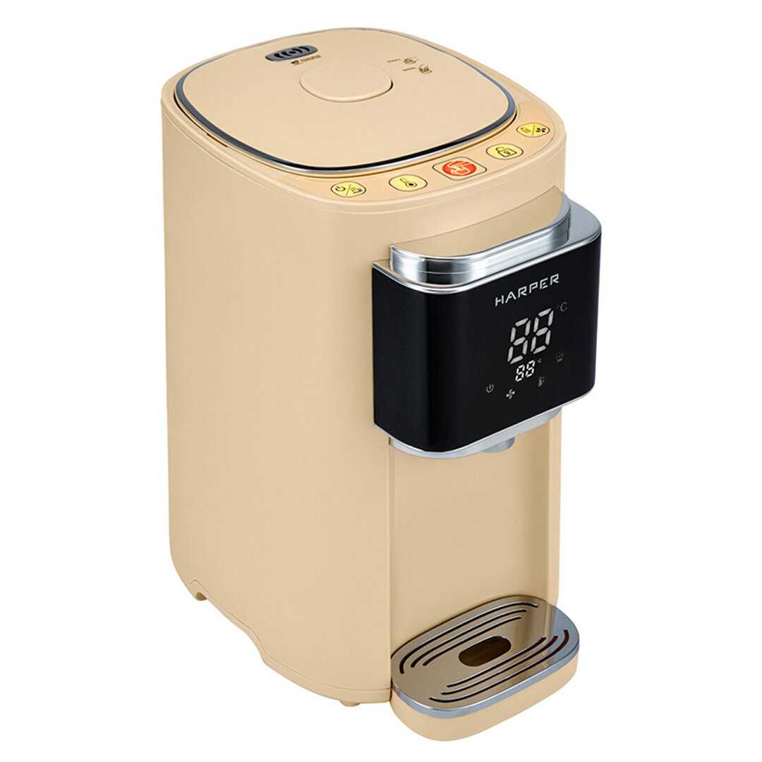 Этот стильный бежевый термопот Harper HTP-5T01 приобрели в нашу большую семью, где у каждого свои предпочтения по употреблению напитков: отец любит горячий, я люблю теплый, а муж предпочитает более прохладный чай. Удобство в том, что можно выставлять на сенсорной панели нужную температуру: в термопоте их аж 6. Он отлично справляется с кипячением, нагревом и даже охлаждением воды. Диапазон температур от 45 до 95 градусов. Есть функция термоса и защита от перегрева.