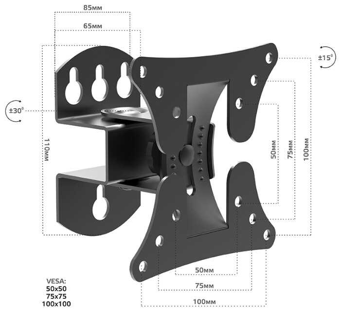 - Малый угол наклона вверх-вниз, недостаточный для больших экранов 32+ дюймов или низкого размещения.