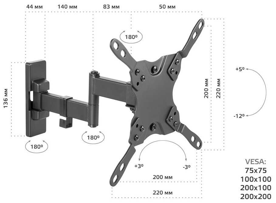 | Стандарт крепления VESA : | 100x100 мм, 200x100 мм, 200x200 мм, 75x75 мм |