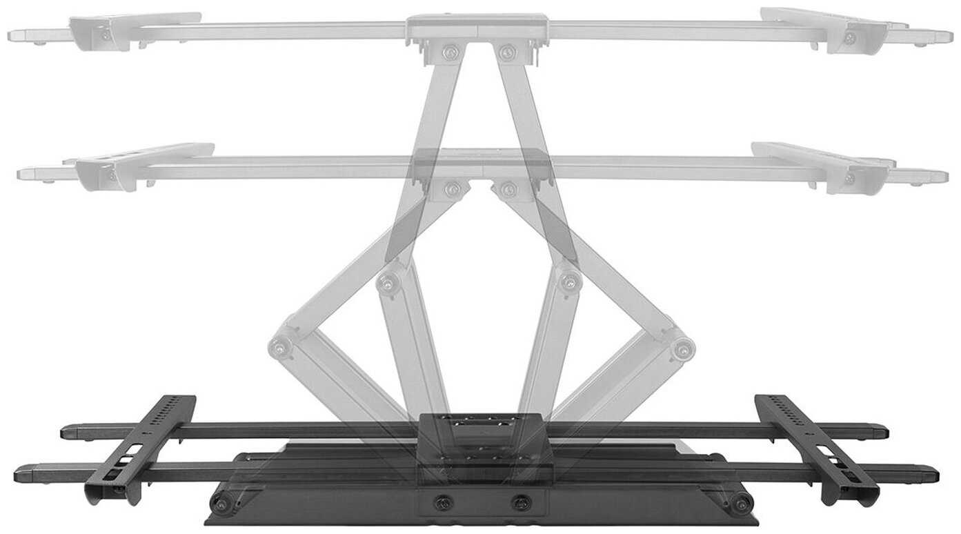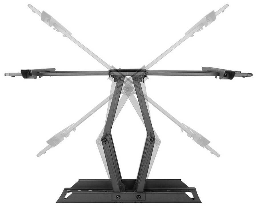 - Толщина металла (1,5–2 мм) и усиленные крепления обеспечивают устойчивость даже при выдвижении ТВ на 50 см от стены.