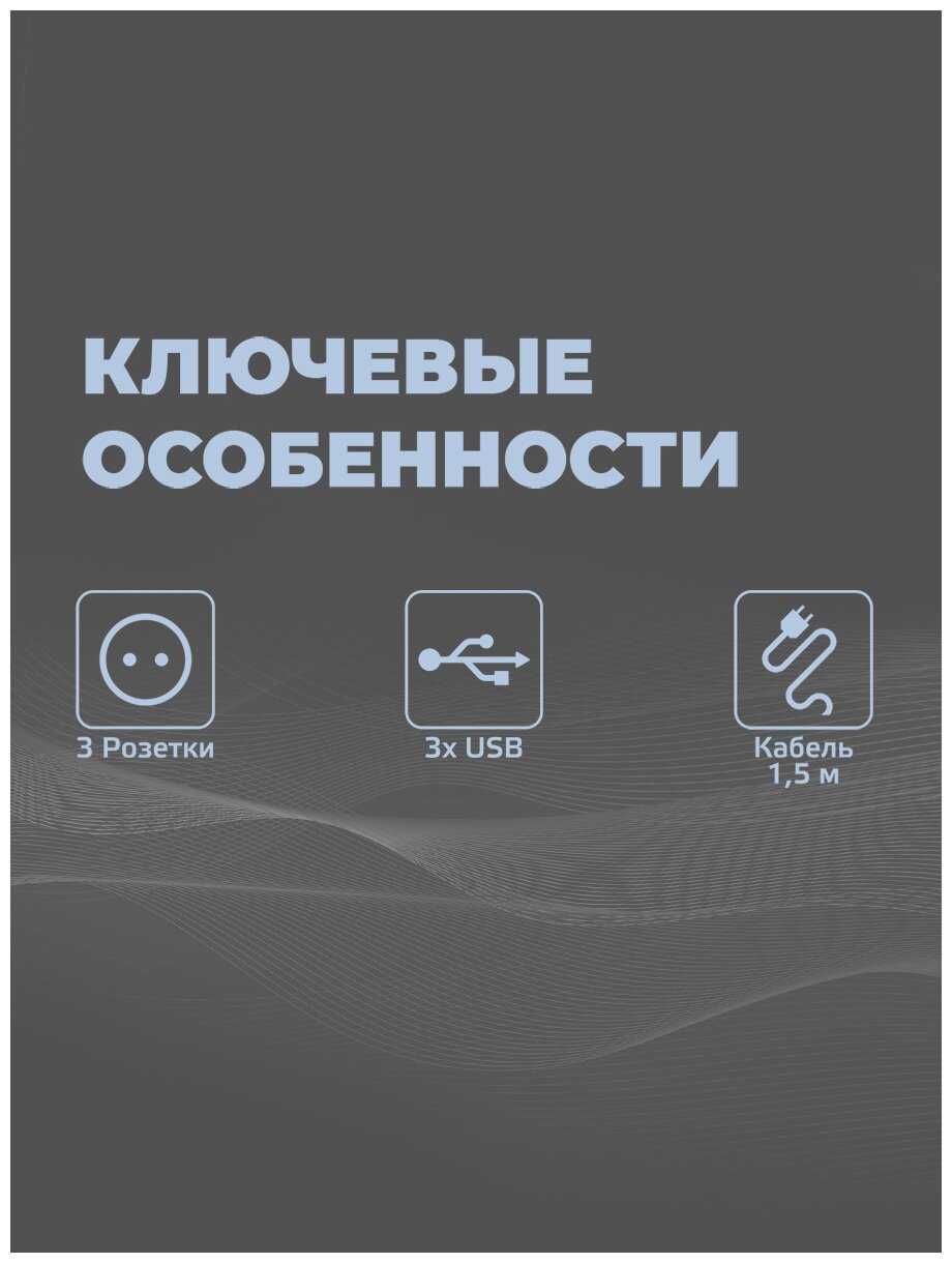 - + 1. 3 встроенных USB-порта, чтобы не занимать стандартные розетки + не искать блок питания зарядного устройства;