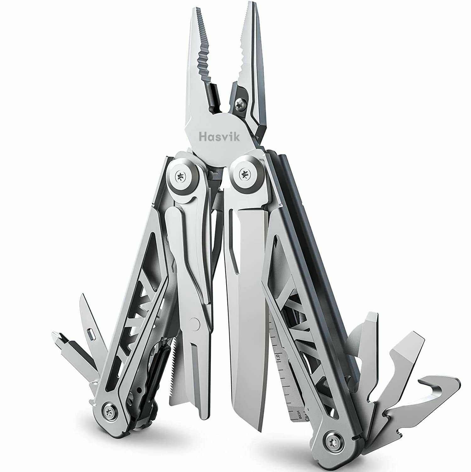 | Инструменты (функции) : | консервный нож, кусачки, линейка, напильник, нож, ножницы, отвертка, открывалка для бутылок, пассатижи, пила, пилка для ногтей, плоскогубцы, шило / кернер, штопор |
