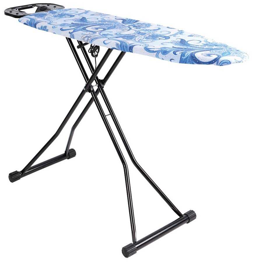 Конструкция с четырьмя металлическими ножками и широким основанием обеспечивает исключительную устойчивость даже при обработке плотных тканей вроде джинсы или постельного белья. Резиновые наконечники на ножках предотвращают скольжение на разных поверхностях, а усиленные сварные швы исключают шатание. Многие пользователи специально отмечают, что доска "не качается и не люфтит" в отличие от других моделей. -