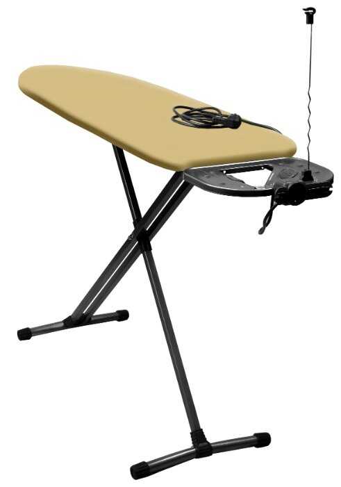 - Удобно для глажки с коротким шнуром утюга, позволяет дотянуться до края доски.