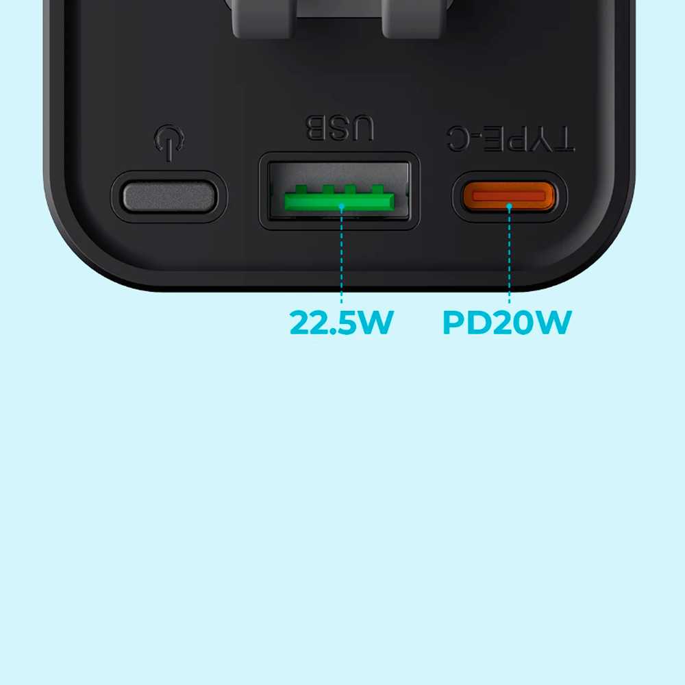 - Один порт для быстрой зарядки, другие стандартные, удобно для семьи или поездок.