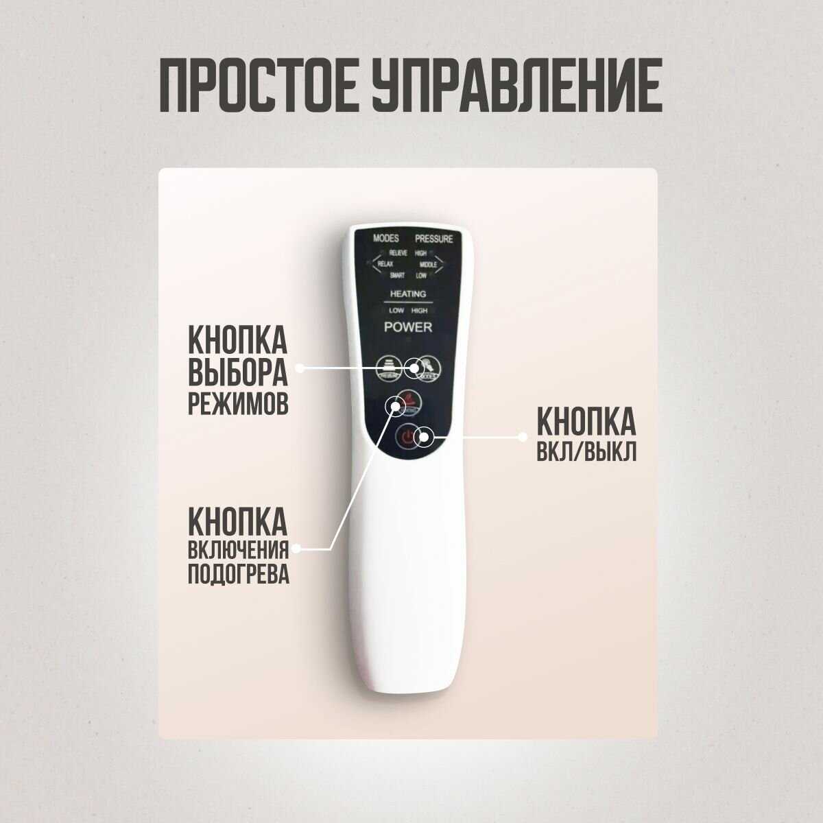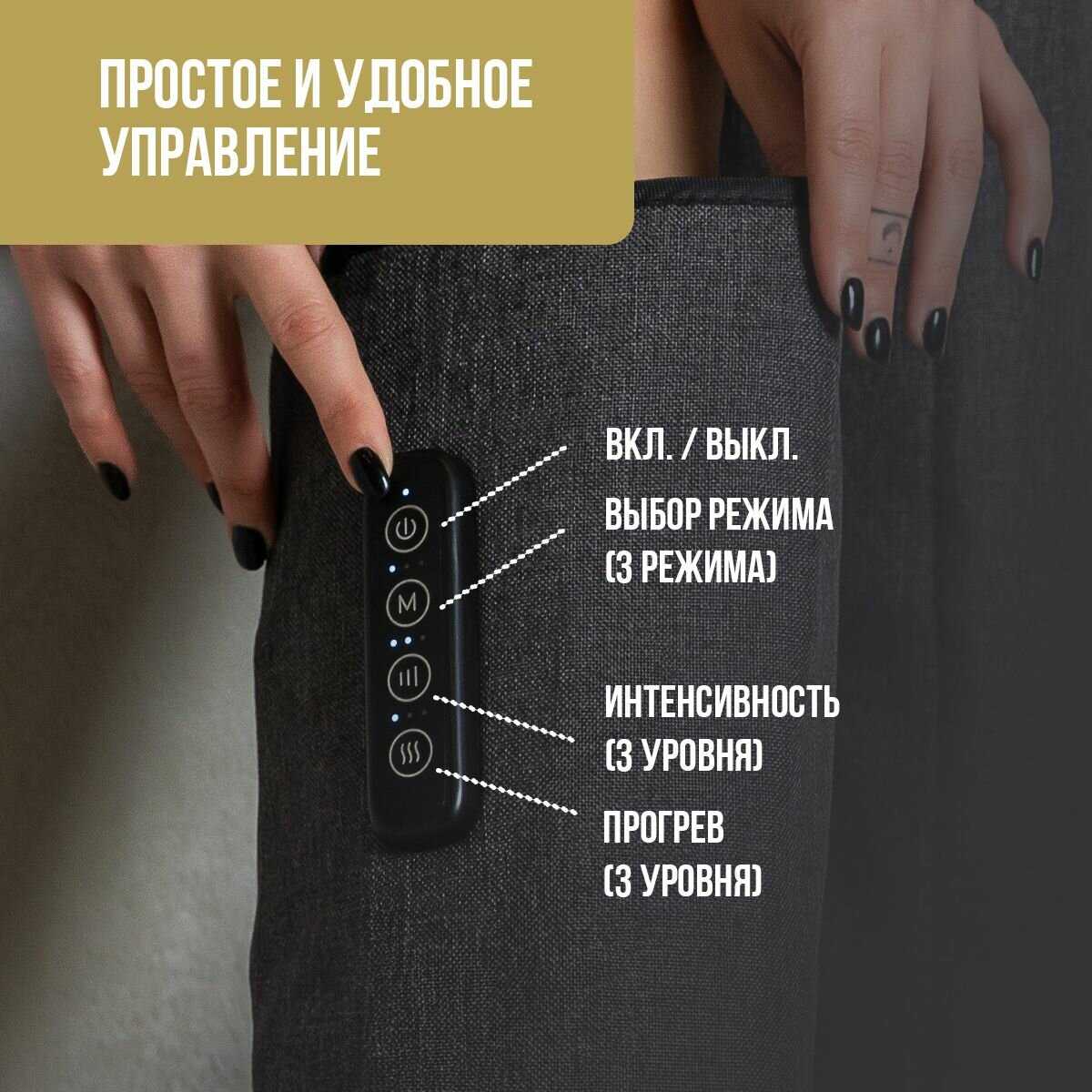 - + Мощный, 6 камер, полный комплект в базе (ноги, рука и талия), возможность отключать не нужные зоны, компактный блок управления