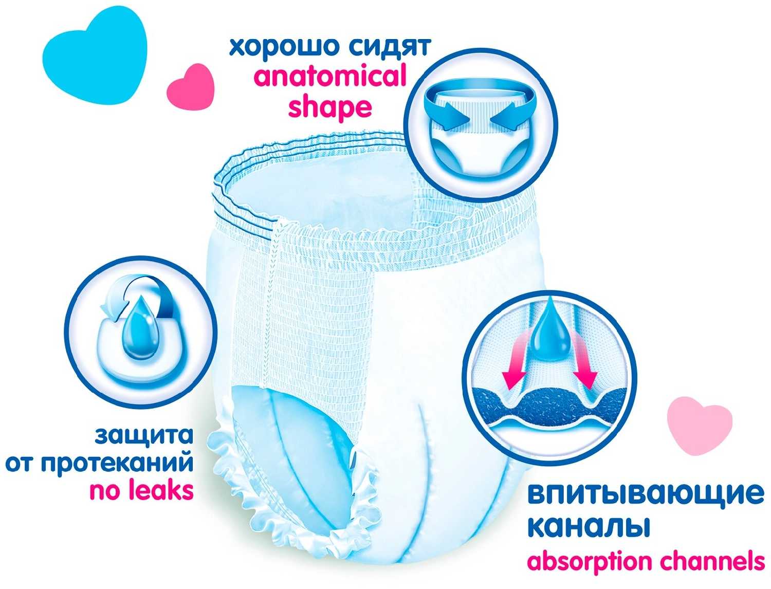 хорошие трусики, пользуемся уже 2 года ( 2 детей) не разу не протекли в отличие от более дорогих. Следов на теле малыша не оставляют