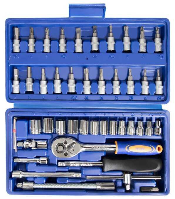 | Инструменты в комплекте : | ключ разводной, ключи гаечные, ключи имбусовые (шестигранные), отвёртки, пассатижи, плоскогубцы, трещотка |