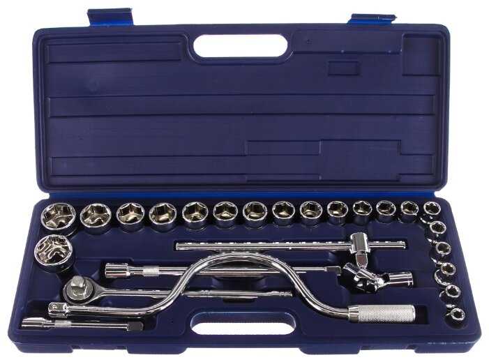 В наборе торцевые головки представлены в 20 размерах, это плюс. Сами инструменты прочные, видно хорошая сталь. Не очень нравится чемодан для хранения, хотелось бы побольше и попрочнее. Но на качество набора это в общем-то не влияет. Хорошо, что есть удлинитель, пригождается.