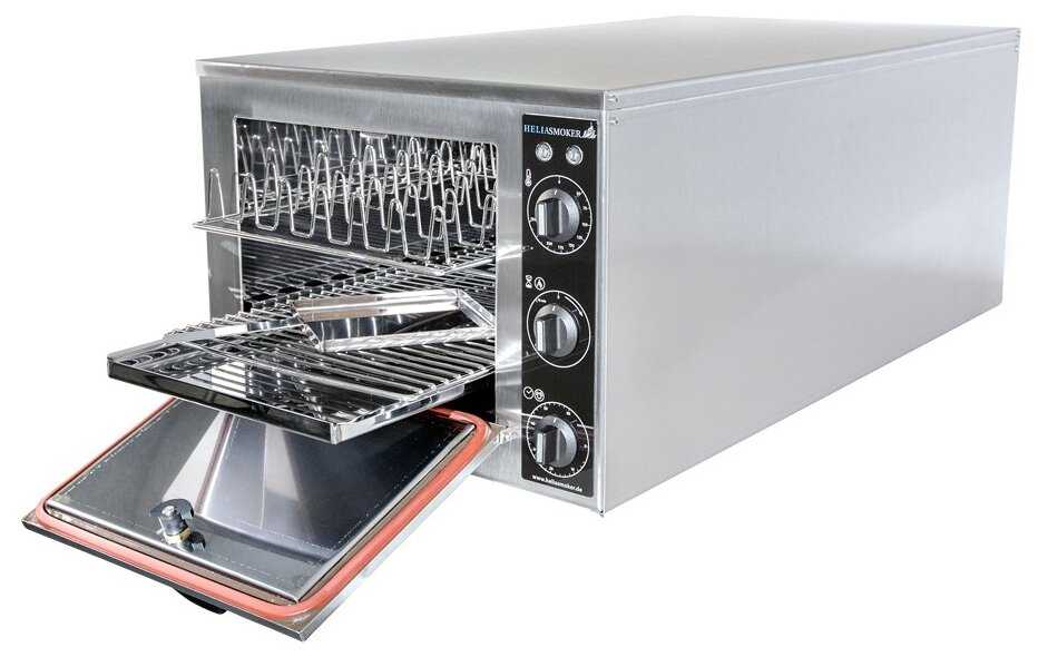 | Дополнительная информация : | 1 глубокий противень (300х800мм) 1 противень для копчения 2 решетка для форели 2 плоские решетки 1 комплект опилок для копчения 1 комплект пряностей Руководство по эксплуатации Книга рецептов 1 шнур и вилка |