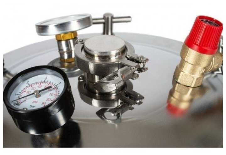 Подробная комплектация : | Комплектация: Корпус автоклава - 1шт Крышка автоклава - 1 шт Силиконовая прокладка под крышку - 1 шт Т-образные стальные винты - 21 шт Механический термометр - 1 шт Механический манометр - 1 шт Клапан сброса давления - 1 шт Фальш-дно - 1 шт Сливной кран - 1 шт Защитные зажимы - 7 шт Инструкция - 1 шт Гарантийный талон - 1 шт Рецепты домашних консервов - 1 шт |